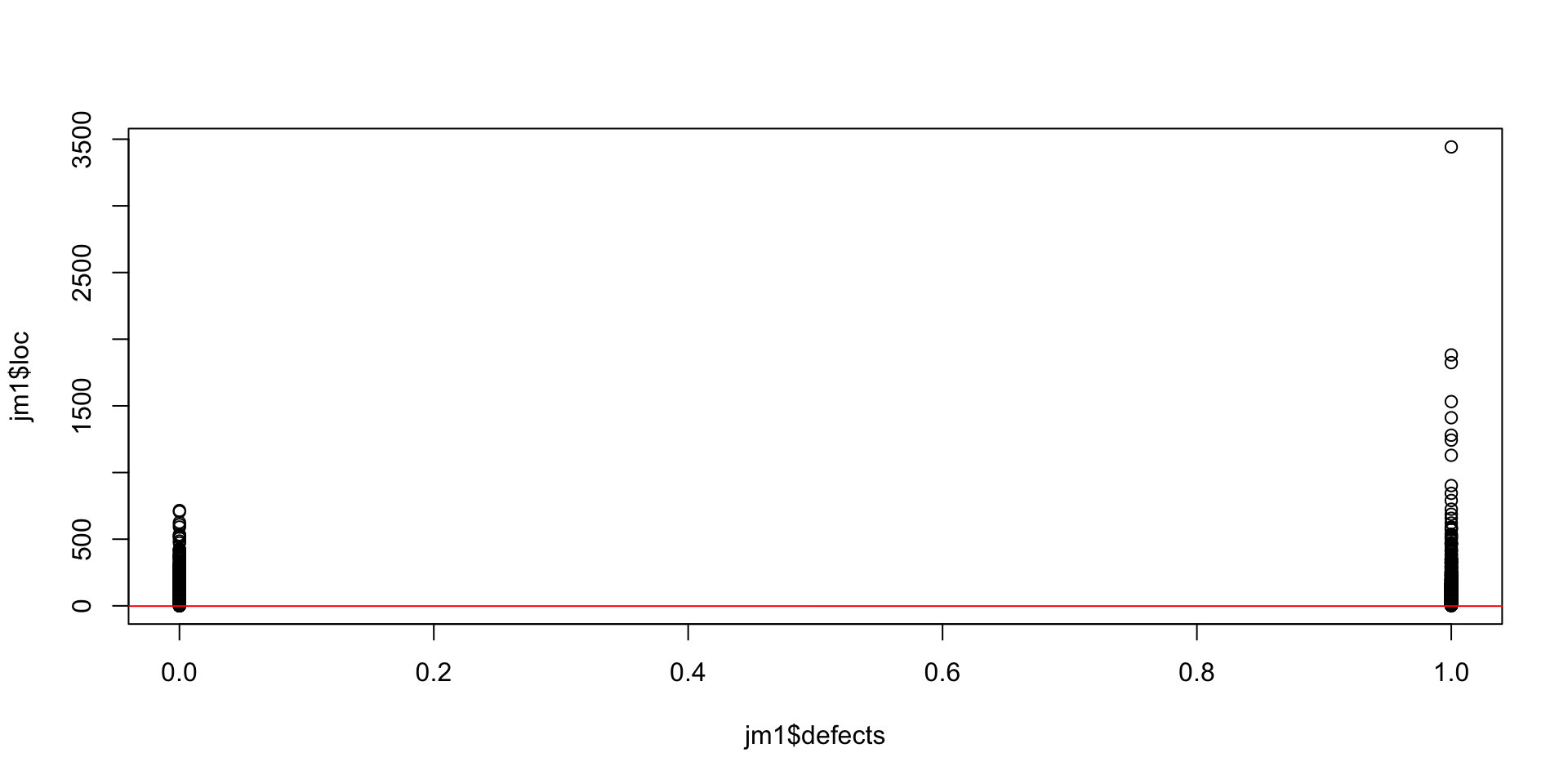 Here we have our two values for defective files, and the LOC on the y-axis.