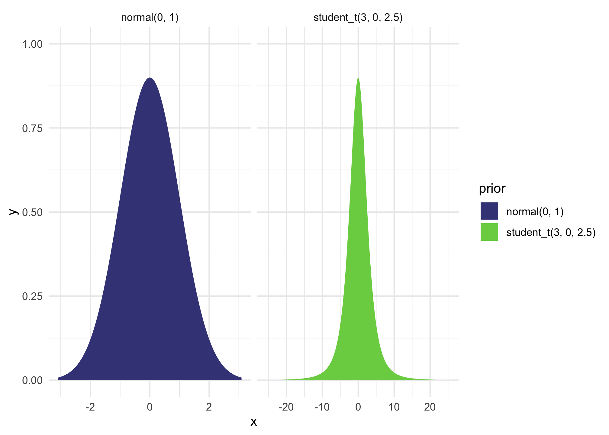 We can run this model with Bayesian regression too. We’ll set some weakly informative priors and define the model like this. If we had more data, we could also model the variance, or \(\phi\), but we won’t here.