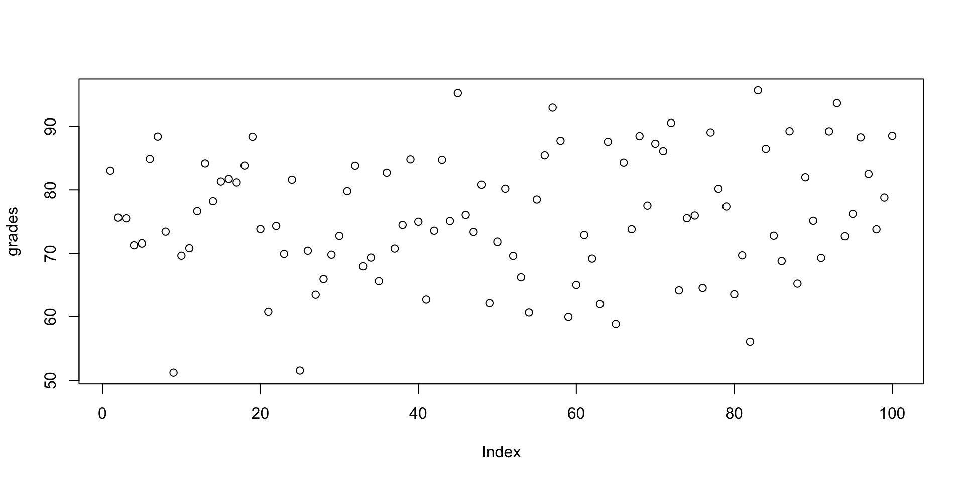 and get a vector of grades, again randomly distributed according to the parameterization we specified. (Hmm, new grading idea!)